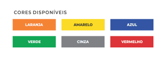 | Cor | Vermelho, azul, amarelo, verde, laranja, cinza |