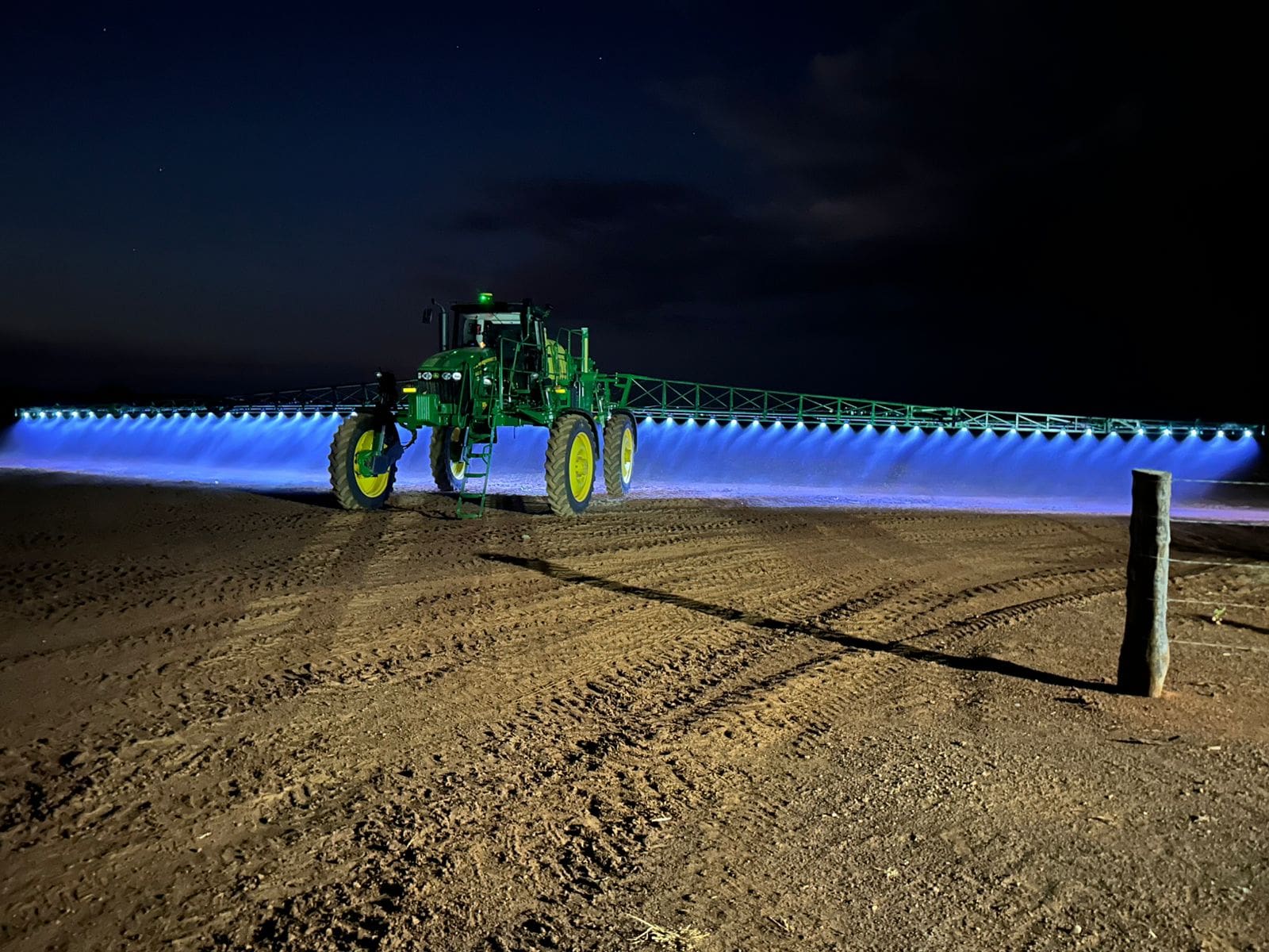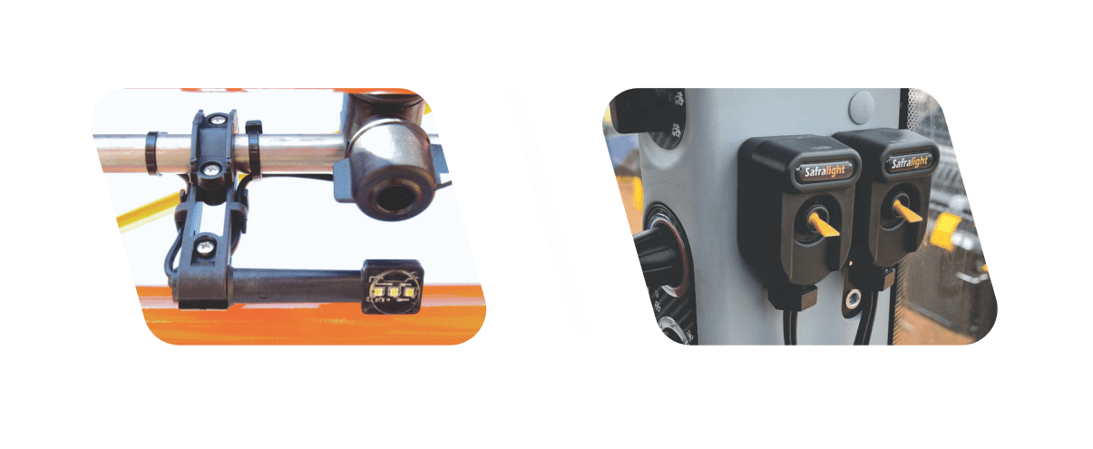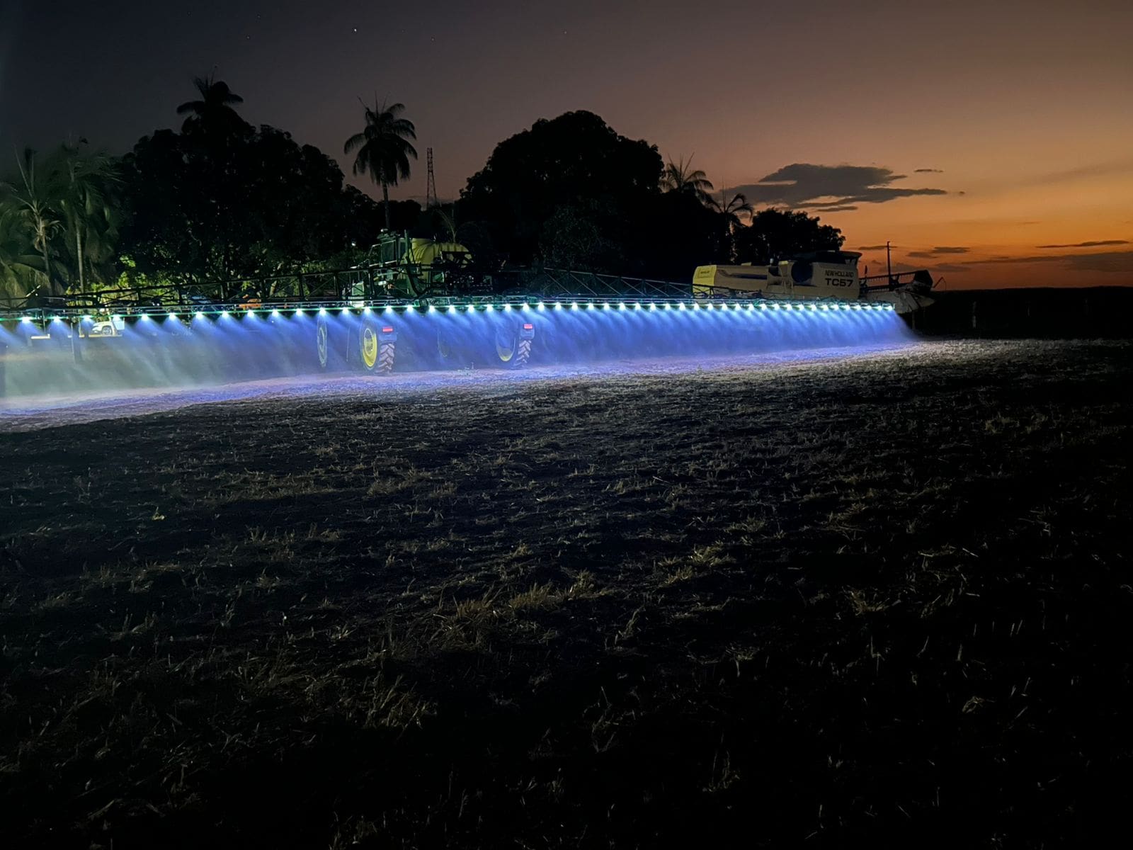 A alta intensidade luminosa do sistema Safralight permite a visualização do spray pulverizador bico a bico, promovendo uma fácil visualização do padrão a partir da cabine.